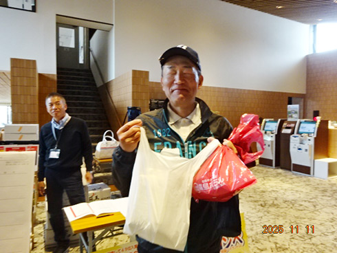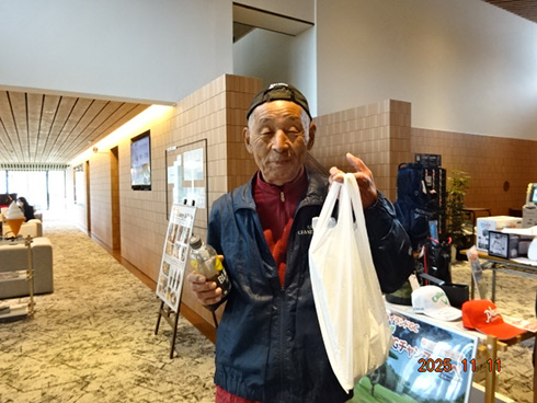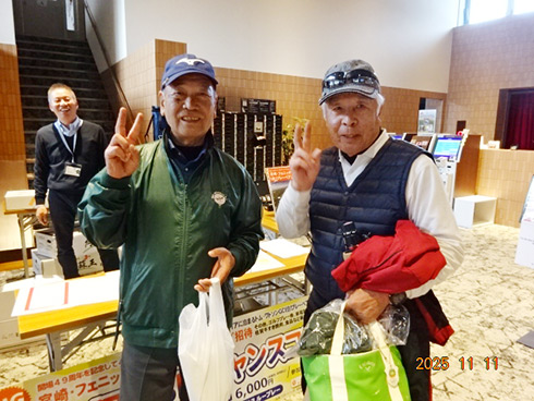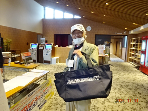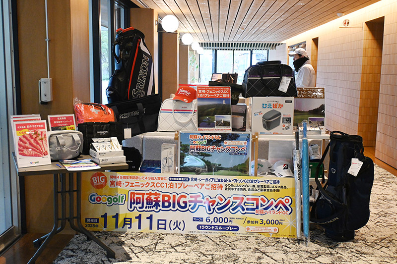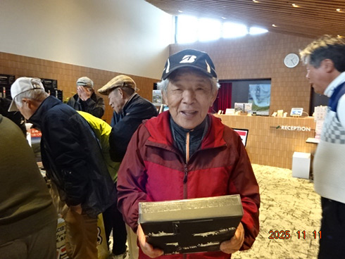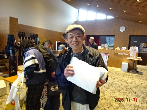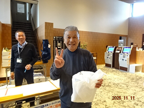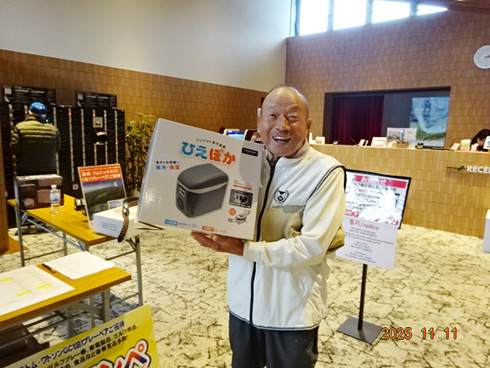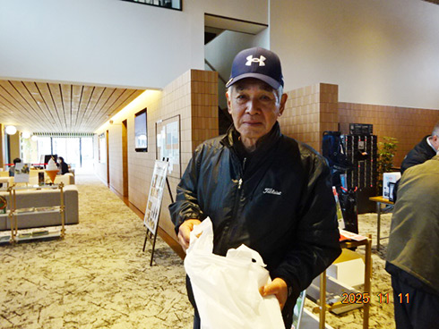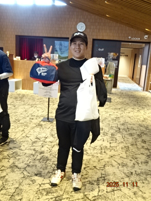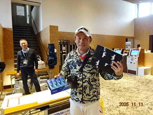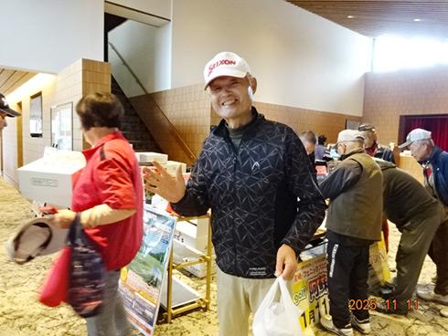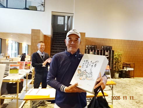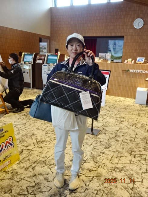 超目玉の同コース開場49周年記念として用意された49位の「宮崎フェニックスCC1泊1プレーペアご招待」を手にしたのは、大分県から参加した廣瀬和美さん(78)。「参加賞で貰うすき焼き肉でいいかなと思って参加したのですが、まさかこんな大きな賞が当たるなんて」と驚いた様子。「昔は年間80ラウンドとか回ってたけど、最近は40ラウンドかな」とまだまだお元気。「目標は86歳まで、あと8年頑張ってラウンドしたいですね」と健康のためのゴルフを強調していた。