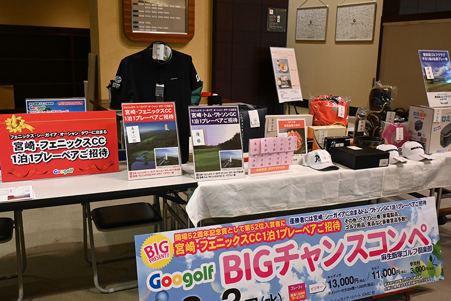 クラブハウスロビーには豪華賞品の数々が並べられた