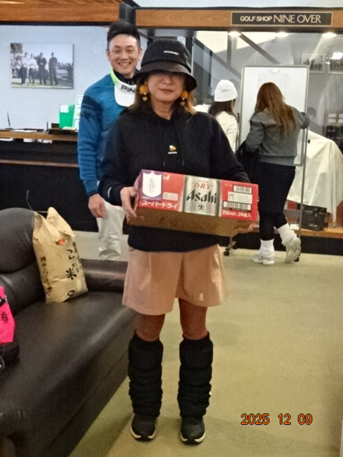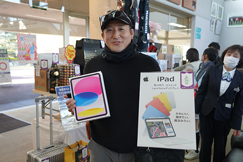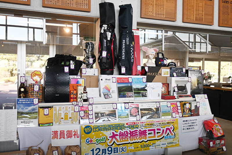 その他、カラーTV、空気清浄機やipadなどの電化製品、有名ホテル食事券、キャディバッグなどのゴルフ用品、佐賀牛すきやき肉やハンバーグ、ビール、お米10キロなどの食品まで、これでもかという豪華賞品が用意され、参加者は盛沢山の賞品の数々に悲喜交々だった。