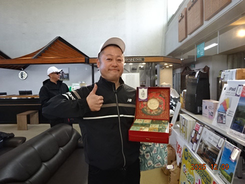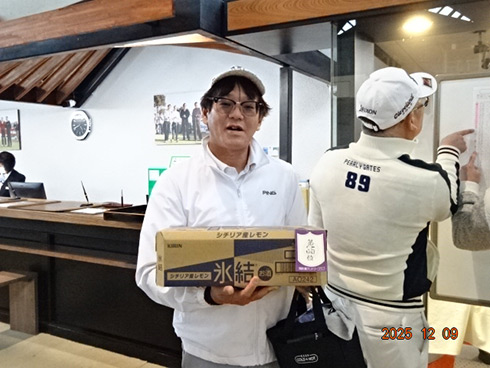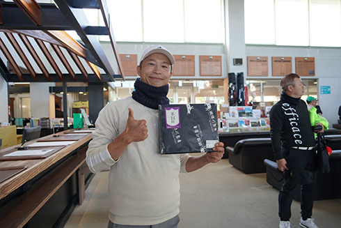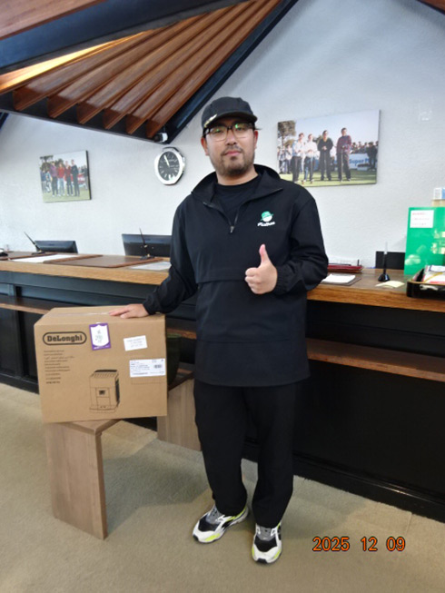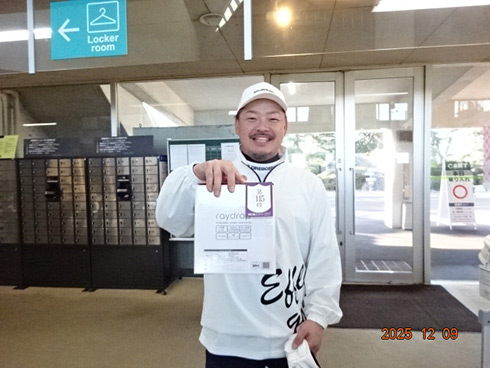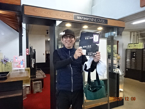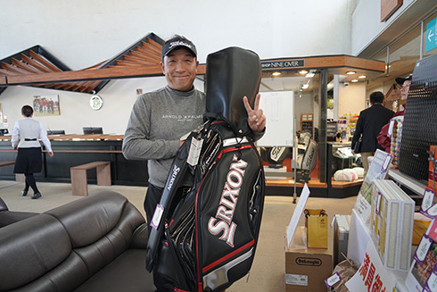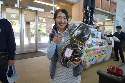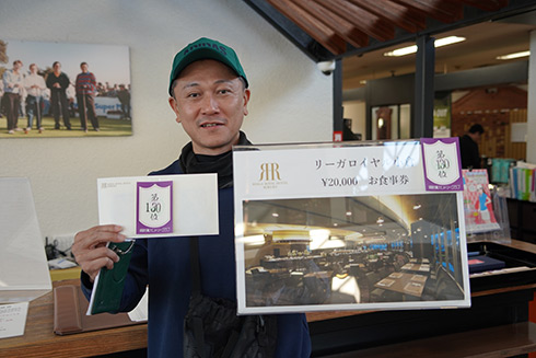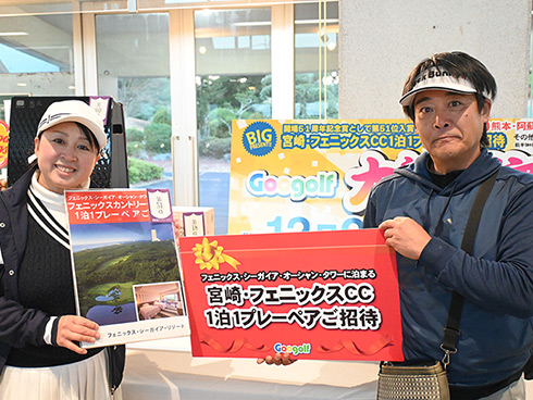 本大会の目玉賞品・宮崎・フェニックス・シーガイア・オーシャン・タワーに泊まるフェニックスカントリークラブ1泊1プレーペアご招待をゲットしたのは、福岡県遠賀郡から参加した山下真一さん(49)。最終組近くに上がって来た山下さん「51位です。ありがとうございます。フェニックスCCは今年初めて行きました。また行けますね」と大喜びだった。