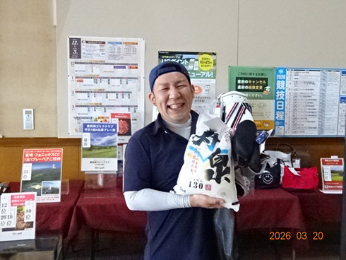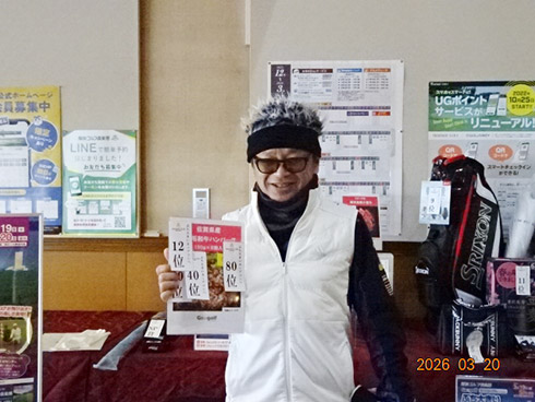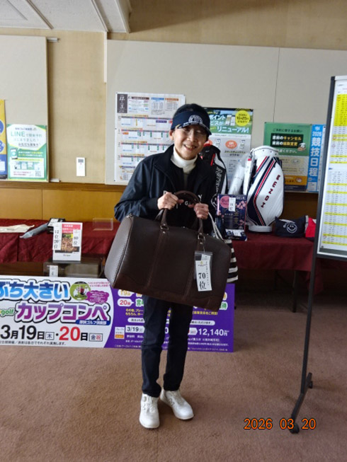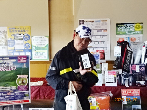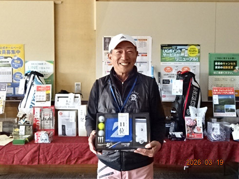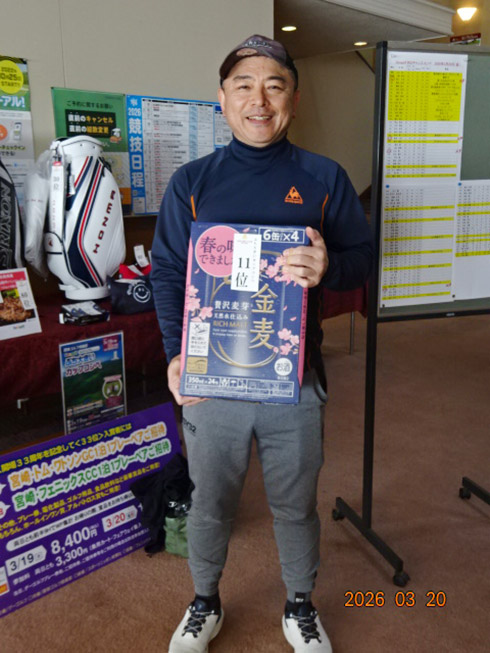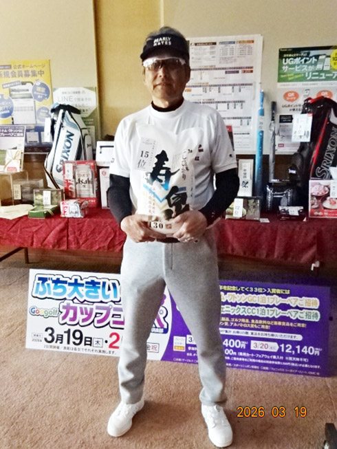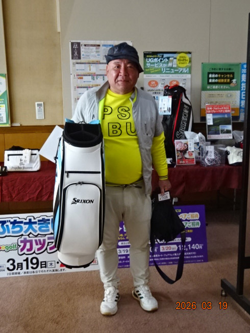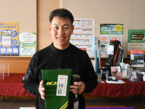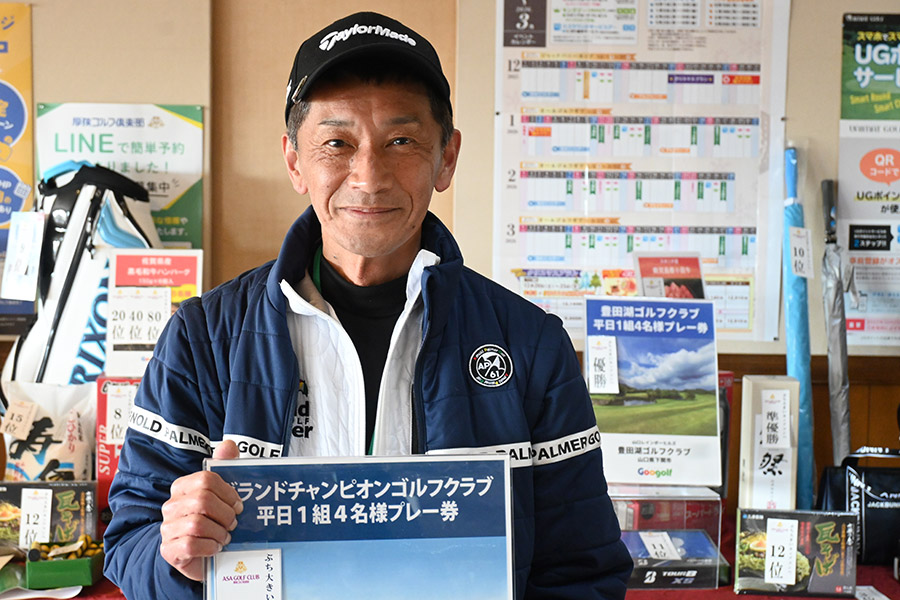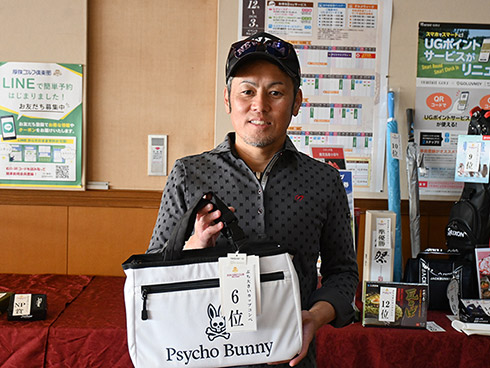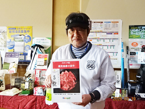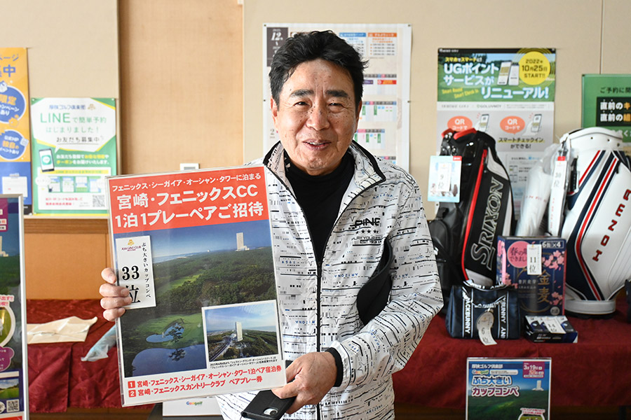 2日目の33位入賞し、宮崎シーガイアに泊まるフェニックスCCペアご招待を手にしたのは、北九州市から参加の綱木昭司さん(67)。「ベストスコアが出ました。38・31の69でした」と嬉しそう。それもそのはず、オフィシャルハンデ6を持つシングルプレーヤーだった。