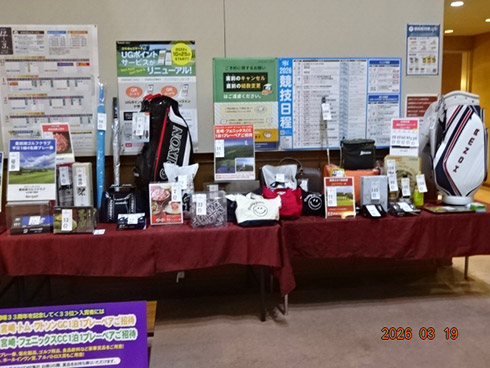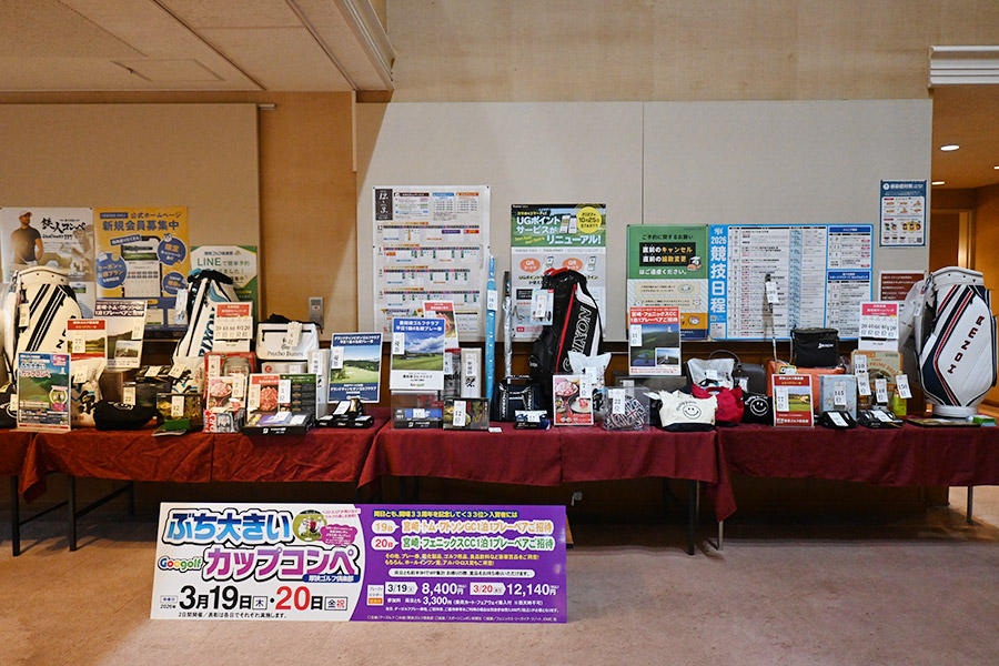 クラブハウスロビーに飾られた豪華賞品の数々