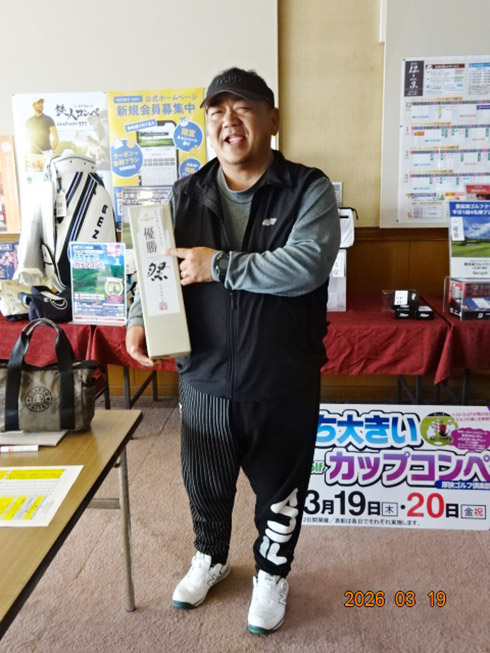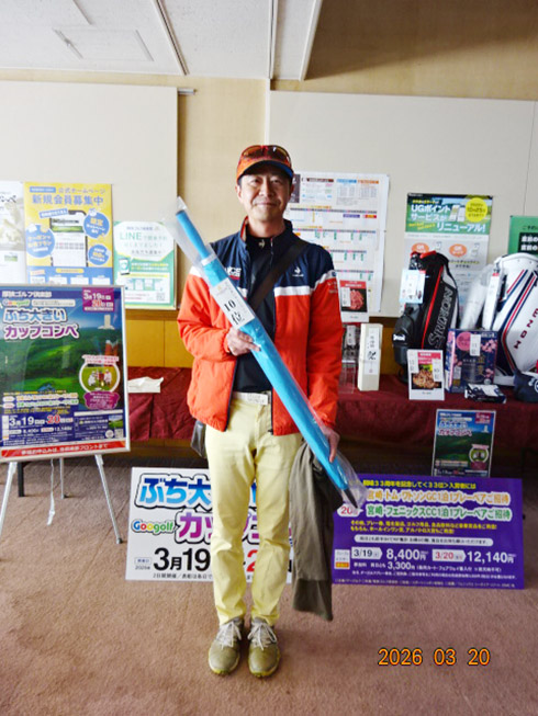 2日目に優勝したのは、福岡市から参加した中井浩一さん(52)。「面白かったです!パットが苦手なのですが、今日は気持ちよく廻れました」と前半を37でラウンドし、栄冠に輝いた。