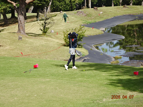 大会当日は、朝のうちは小雨が降っていたが、スタート時間になると嘘みたいな青空となり、絶好のゴルフ日和。