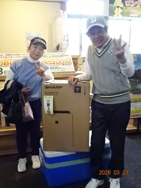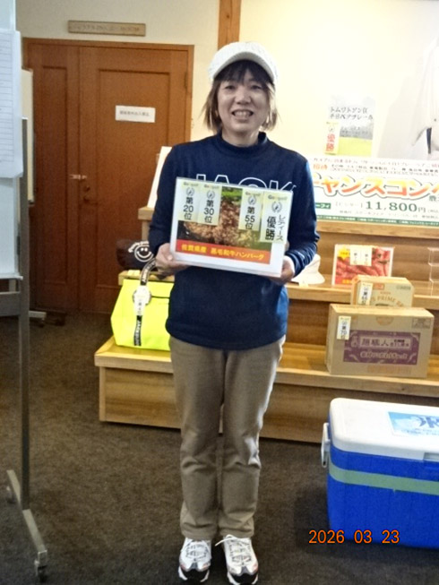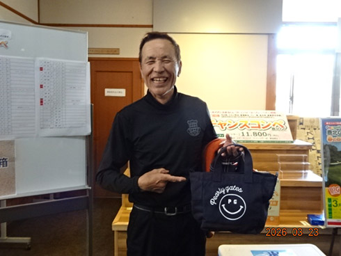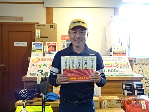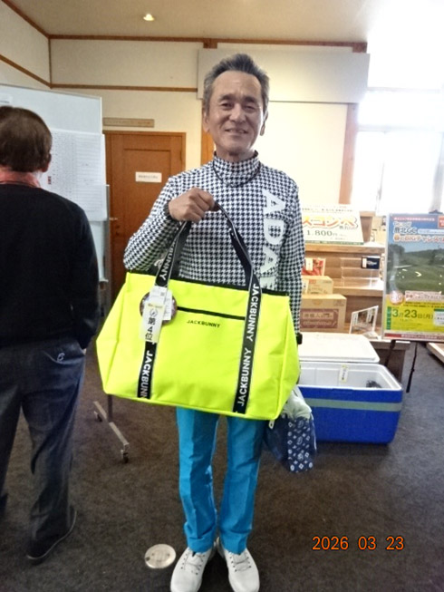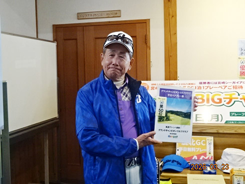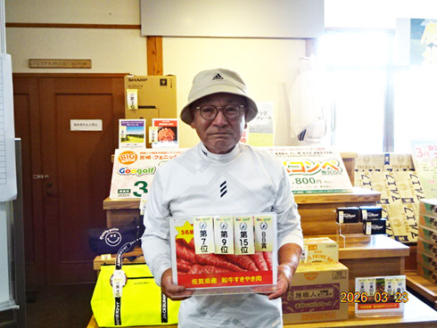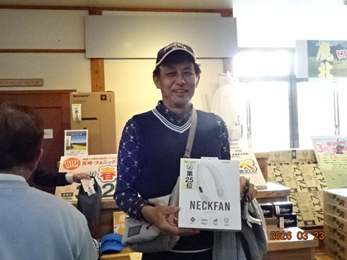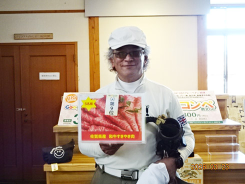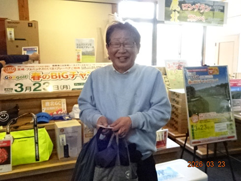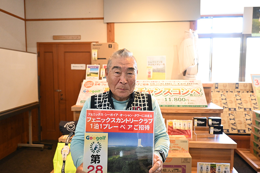 同倶楽部開場28周年記念賞が設けられた28位に滑り込んだのは、福岡市東区からご夫婦で参加した平尾賢策さん(82)。グーゴルフコンペの常連さんだ。前半を41でラウンドしての受賞した平尾さん「悔しいね。やっぱり30台で回りたいよね。最近は、月に5回程度のラウンドで毎月、エイジシュートしています」と豪語していた。平尾さんには、宮崎シーガイアに泊まるフェニックスCC1泊1プレーペアご招待というビッグな賞品が贈られた。平尾さんは、昨年、同倶楽部の春のBIGチャンスコンペで優勝して、トム・ワトソンGC1泊1プレーをゲット。2年連続のBIG賞の受賞となった。