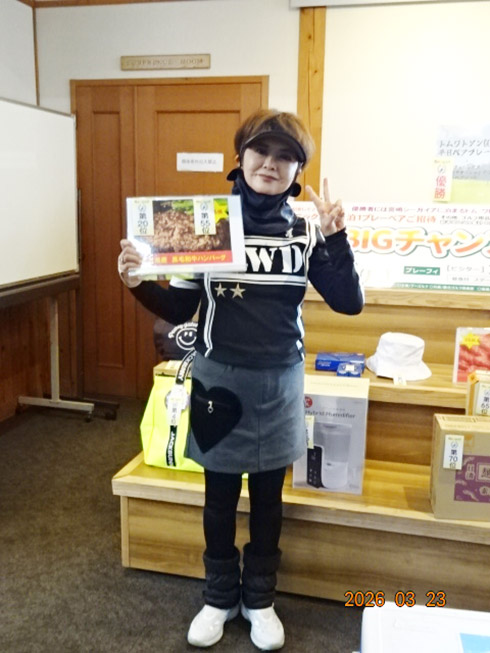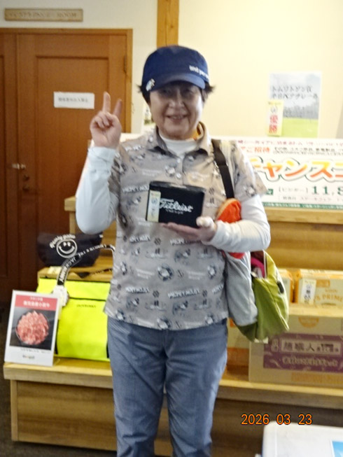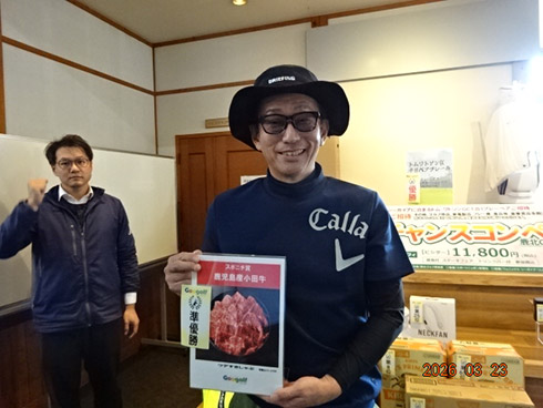 優勝して、宮崎シーガイアに泊まるトム・ワトソンGC1泊1プレーペアご招待を手にしたのは、久留米市から参加した秋元広勝さん(63)。「グーゴルフコンペは初めて参加しました。トム・ワトソンGC行ったことがないので、ラッキーです。プレーが楽しみです」と奥様と一緒に嬉しそうに語ってくれた。